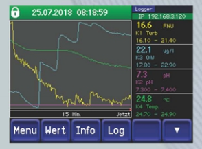 | 集成控制單元 通過彩色觸屏操作本套儀器 .數(shù)值、圖標、狀態(tài)或警報可依選擇呈現(xiàn) .內(nèi)建數(shù)據(jù)日志記錄測量情況可顯示長達32天記錄 .廣泛的通信選項-包含集成網(wǎng)絡服務器 |