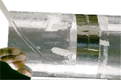 撕下大壩外圍的襯里,完全暴露膠水,避免污染物和雜物接觸